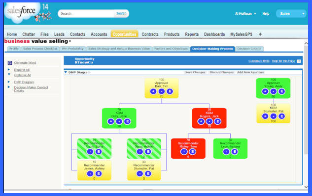 The Business Value Selling™ plug-in for salesforce.com adds process-based tools that sales people can use to help them navigate through complex selling situations.The easy to use planning tools will improve their qualification process and chance to win business that they can and should win.