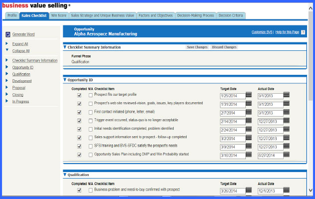 The Business Value Selling™ plug-in for salesforce.com adds process-based tools that sales people can use to help them navigate through complex selling situations.The easy to use planning tools will improve their qualification process and chance to win business that they can and should win.